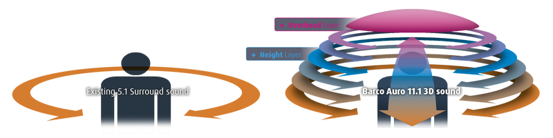 بوستر الموضوع، ستلاحظ في الصورة وجود السماعات على 3 مستويات/طبقات بشكل أفقي " أسفل / وسط /أعلى "ومن "الخلف/ والأمام" وهذا النظام أو التقنية ابتكرها ويلفريد فان عام 2005 ، الرئيس التننفيذي لشركة أورو للتكنولوجيا فقام بتسمية هذه التقنية أو الطريقة Auro باسم الشركة والذي يعتمد على 11 مكبر صوت وأكثر