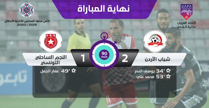 ختام منافسات المجموعة الثانية للتصفيات الأولية المؤهلة إلى دور 32 لبطولة كأس محمد السادس للأندية الأبطال بتأهل فريق مدينة بشّار الجزائرية فريق الساورة بعد تغلبه على النادي البنزرتي في الدقيقة 89 من المباراة ألفمبروك!