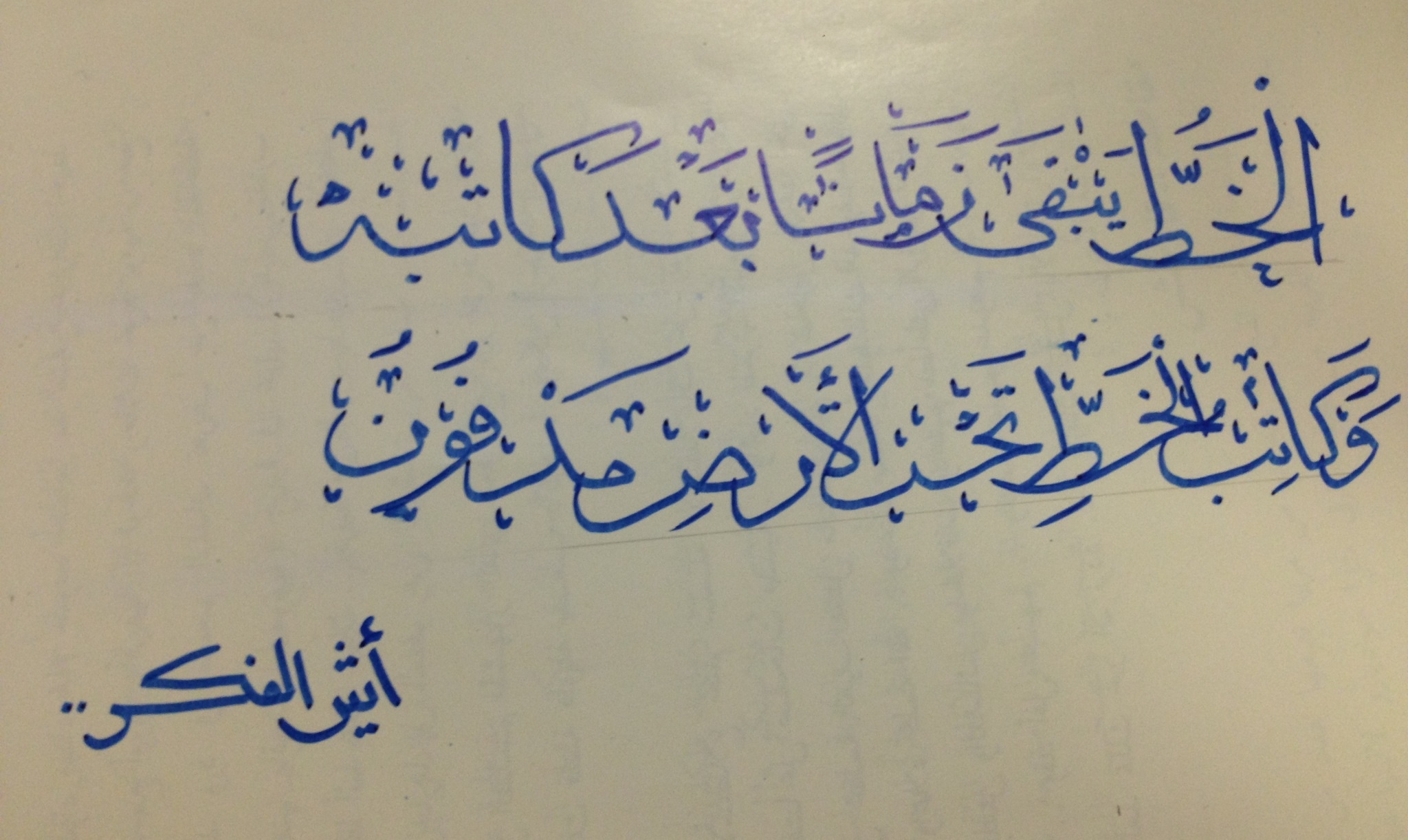 نوع القلم فاشل وليس له علاقة بالخط وبدأ حبره يبهت أثناء الكتابة، ثم وجدت العديد من الأشكال الغريبة المتكونة بعد الكتابة ><